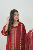 Mahriza Embroidered Lawn Stitched Suit – MEL-002 (Mehroon with Black, Yellow & Cream Embroidery)