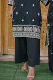 Step into elegance with the Mahriza Embroidery Lawn Stitched Suit MEL-003. The premium black lawn fabric is soft and comfortable, adorned with exquisite white and gold embroidery. Complete with a lightweight chiffon dupatta, this stitched suit is perfect for formal events, festive gatherings, and evening wear. Upgrade your wardrobe with this sophisticated attire today!