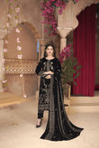 Radiate timeless grace with our Noir Velvet Luxe Embroidered Ensemble, a stunning three-piece suit that captures the essence of royal sophistication. Crafted from premium rich velvet, this outfit features intricate antique gold zari and resham embroidery with delicate floral and vine motifs that shimmer beautifully against the deep black base.